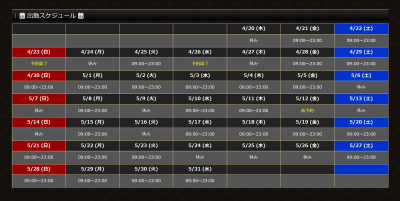 連休、5月の出勤スケジュール
