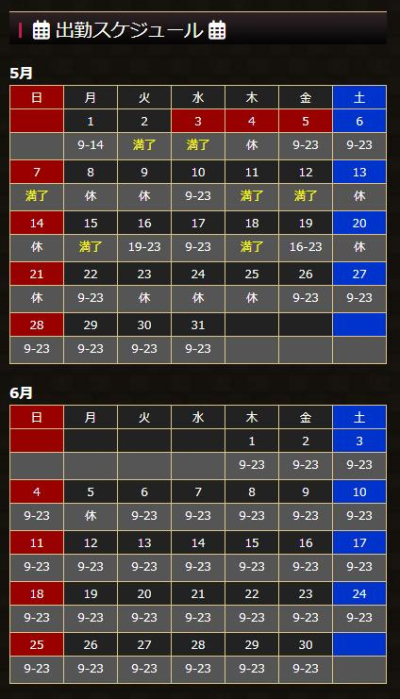 今後の出勤スケジュール