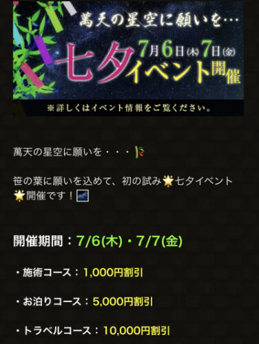 萬天堂では七夕イベントを実施中なので是非ご利用ください!