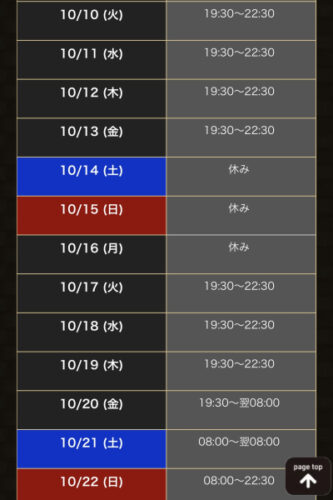 10/20(金) 19:30(横浜20時)〜翌8:00