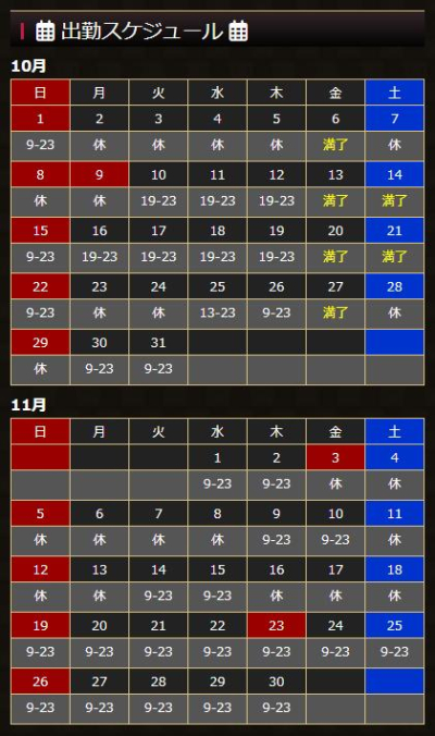 11/19以降の予定が未定のため