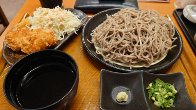 もり蕎麦と唐揚げのセット。