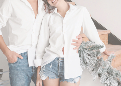 お客様がカーキのシャツで白いパンツスタイルの日に