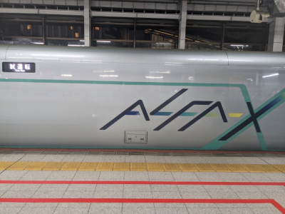 最近、仙台に行く機会が多くなり、東北新幹線を利用しているのですが、先日、帰京するため仙台駅の新幹線のホームに行ったところ、なんと、新型の新幹線の車両のテスト運行に遭遇できました!!