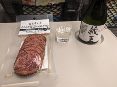 疲れているはずの出張帰りでしたが、この日はテンション上がって、しっかり帰りの車両で”居酒屋新幹線”開店させて牛タンと日本酒を堪能しました。