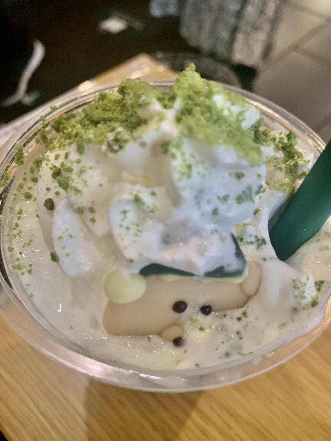 バリスタさんに乗せられたクマさんは