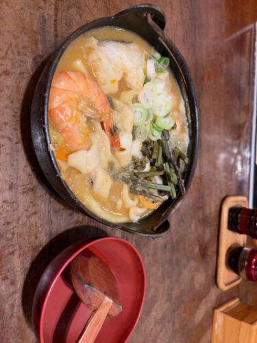 ”えび” ”タラ” ”ホタテ” ”鶏肉” いっぱいのってるんだ〜♪ とワクワクしていたけど、、そういえば、山梨って海産物って地元食材じゃないよな?と気がついたのは料理が目の前に届く数分前・・