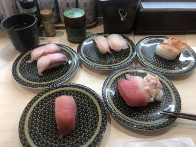 日本人の大多数が「右利き」だからというのが有力な説だそうです🤔右手にお箸、左手でお皿を取るスタイルに右回りのレーンが馴染むということですね!ちなみにこの日は35皿いただきました笑
