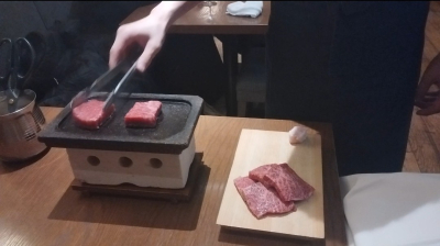 メインの焼き肉のデモンストレーション…と