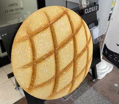 しかし、買ったメロンパンの写真を撮るのを忘れたのでお店の前にあるデカいメロンパンの看板を載せておきます...