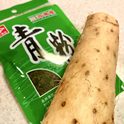 すりおろします。あおさをフリフリ