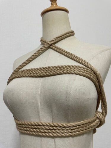 ※画像の縛り方は練習用マネキンに腕がないため、色々省いた縛り方となっています。実際はこの形は使用しません。