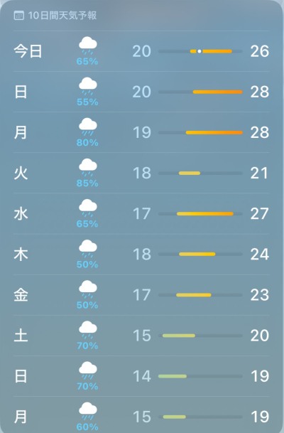 お疲れさまです。 気温が落ち着いてようやく過ごしやすくなりましたね😌 天気予報を確認すると、雨マークが少し並び過ぎな気がします😅 気持ちが落ちないよう過ごして行きたいですね✨ …