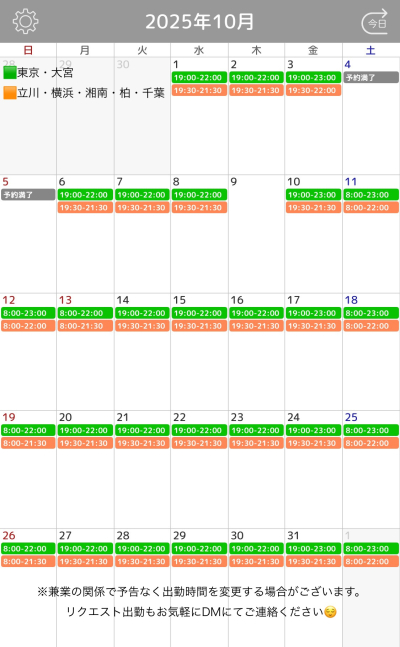 こんばんは!春樹です🍀 最近ようやくエアコンをつけなくても心地よい気温になってきましたね!お出掛けのときはいつも半袖か長袖か迷ってます🙃 唐突ですが10月の出勤予定が決まりました📅文字が小…