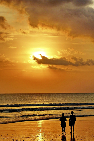 夕暮れの海を歩きながら