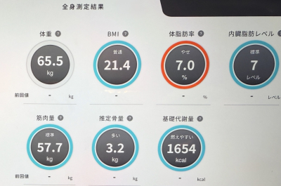 こんばんは! 獠です。 仕事帰りにジムで自主トレしてきました。 今日の測定結果 体脂肪7.0%、筋肉57.7kg、 基礎代1654kcal …