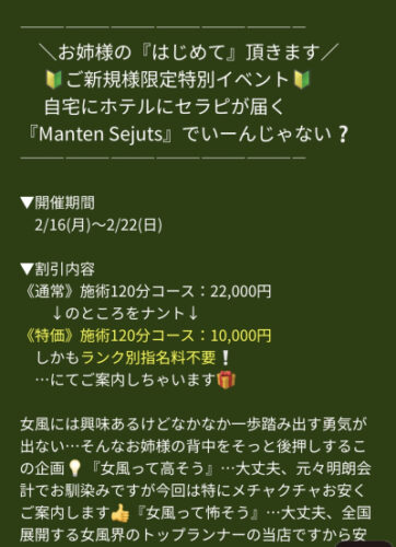 萬天堂を初めてご利用のお客様限定で120分10,000万円というお得すぎるイベントです👍