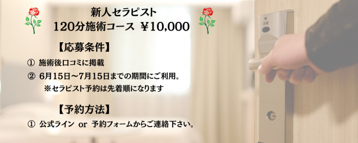 新人セラピスト¥10,000 企画開催!