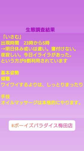 皆さん、こんにちは。 こんばんはの方はこんばんは。 ボーイズパラダイスの 「いさむ」です。 本当の自分なんて誰も分からないでしょう。 色々な自分を見つけるのも面白い(*^^*) …