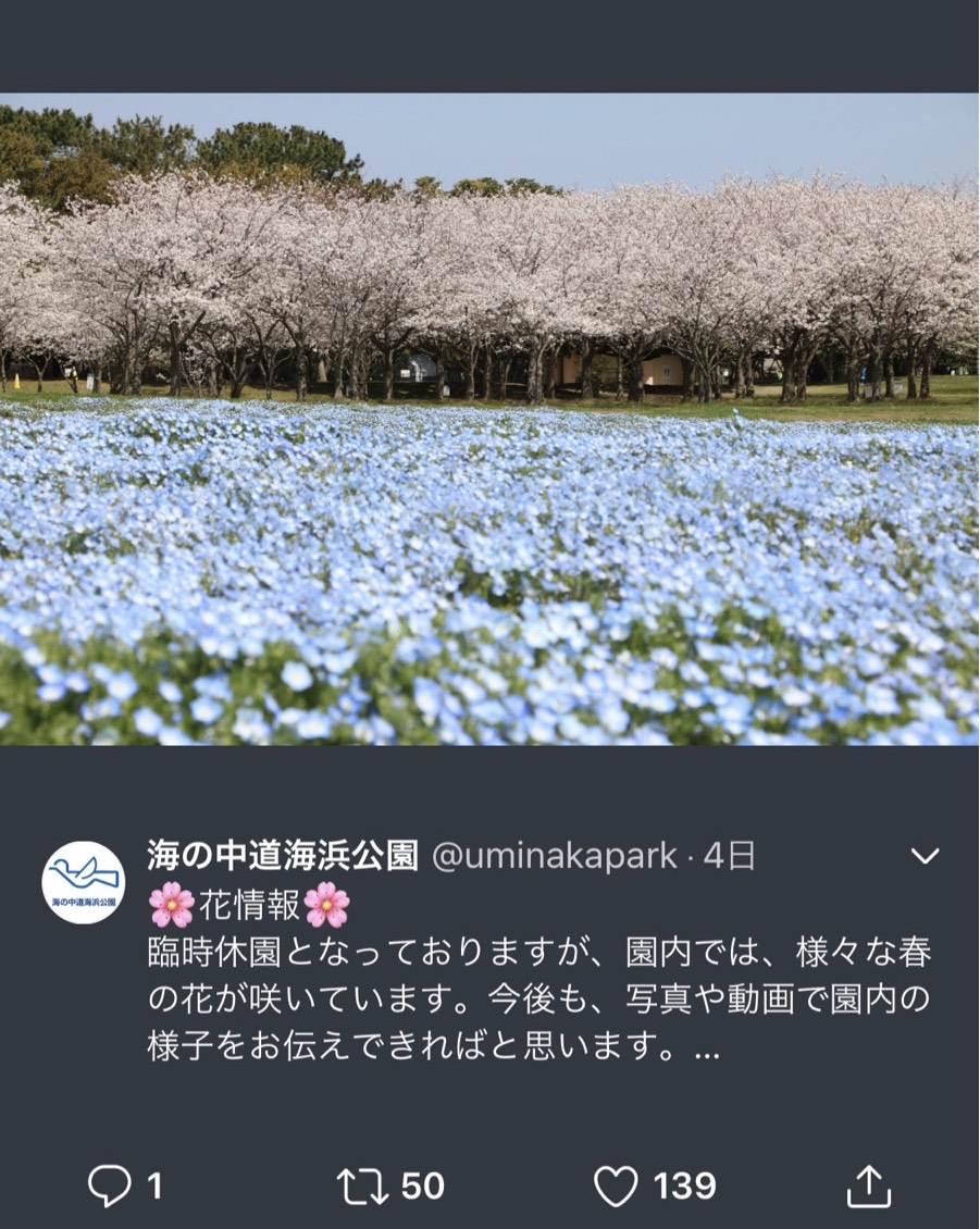 みなさんも是非、検索で「ネモフィラ 海の中道」で調べたらバリバリ綺麗な写真が出てくるから是非見てみて下さい^ ^ヒトシ【puraten10_japan】さんって方の写真がもう感動する!色合いがガルエクっぽいんですよねー