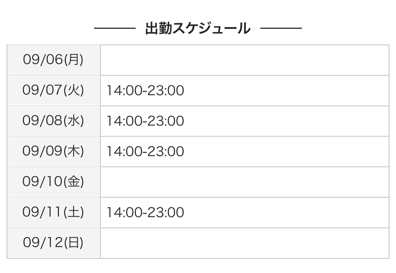 出勤予定です!ご予約お待ちしてます。今日、14時から出勤です!