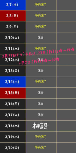 次回の出勤予定は