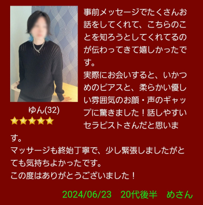 事前の連絡もなく急に予約を入れてもらい、びっくりしたけど、とても嬉しかったよ😌