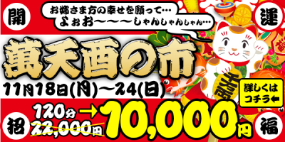 11月18日~24日までイベントが開催されます🎉 なんと120分コースが10000万円です😳(通常120分22000円) 萬天堂はじめてという方も二回目、三回目という方もどちらも対象です☺…