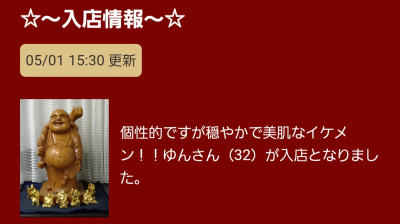 こんにちは、ゆんです🐬 つい先日、何気なくサイトをぽちぽち見てたら… 入店情報に僕が紹介されてまして、「個性的ですが穏やかで美肌なイケメン!!」と記載されているのを見てとてもびっくり…