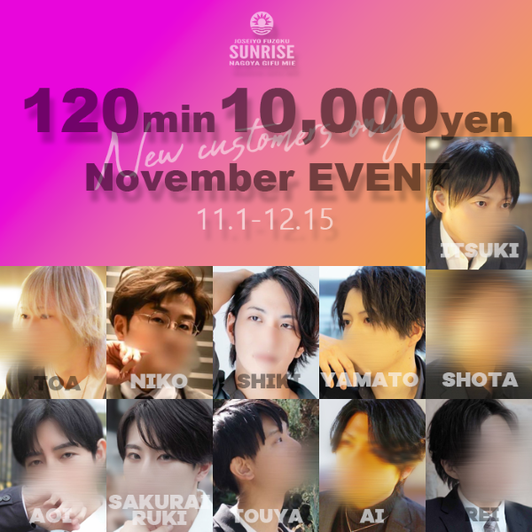 SUNRISE名古屋!12月のイベントは初指名様120分10,000円イベント大好評につき延長!!