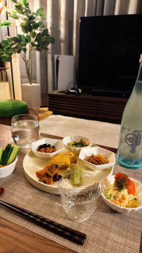 おつまみはいつも通り、簡単なおばんざいを少しずつ🍽️