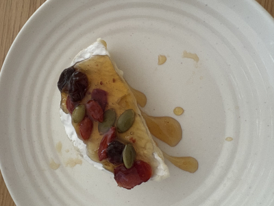 おはよう!!😃 連です! みてみて、朝ごはん🧀 チーズチーズ!!笑 専用ハチミツがセットで売ってたのよ🍯 変な味! 連🐝