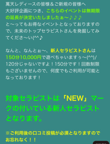 150分10,000円は10/29(日)ラスト20:00まで