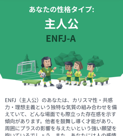 やってみました…結果は「主人公」...ENFJ-A...でした!