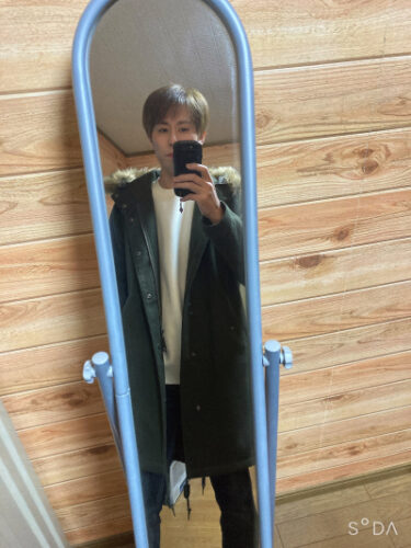 ミリタリーでハードっぽく見えるのですが、生地感と丈のおかげで綺麗めにまとめやすい。もしより綺麗めに落とし込むのであれば、ファーも外してしまう事もできます。ただ、そこまですると少し面白みには欠けるかも?
