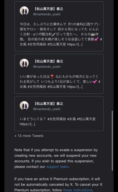 先日よりx(Twitter)がアカウント凍結されました。