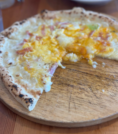 そもそもここのピザは生地が物凄く美味しい🤤薄くてパリパリ、耳はもっちりで薪焼きの香ばしさも✨