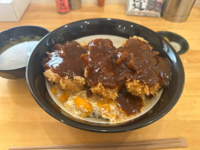 清潔感のある店内で揚げたてのカツ♡フワトロの半熟玉子にコクのあるデミグラスソースがかかってる珍しいカツ丼です♡