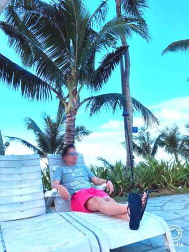 コロナ禍前、毎年年末に旅行で行ったグアムのビーチ、青い空に透き通る海、柔らかい白い砂浜、日本の海では考えられないような水着👙を着たレディ…🫣