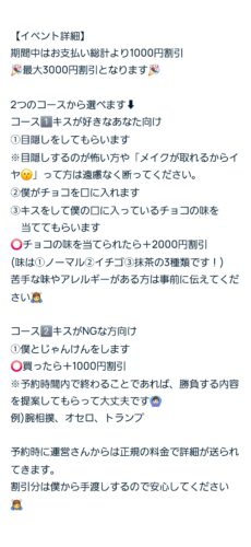 【お知らせ】12月25日(水)でデビューして半年になります(*´ `*)日頃の感謝を込めて個人イベントをします(`・ω・´)期間:12月1日(日)~12月31日(火)初指名,本指名どちらも適応です。期…