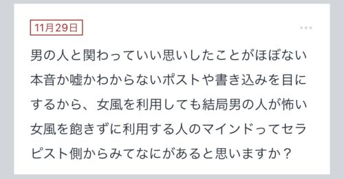 【女風を飽きずに利用する人のマインドってセラピスト側からみてなにがあると思いますか?】