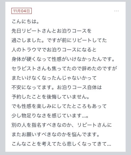 【別の人を指名すべきなのか、リピートさんにまたお願いすべきなのかを悩んでます。】