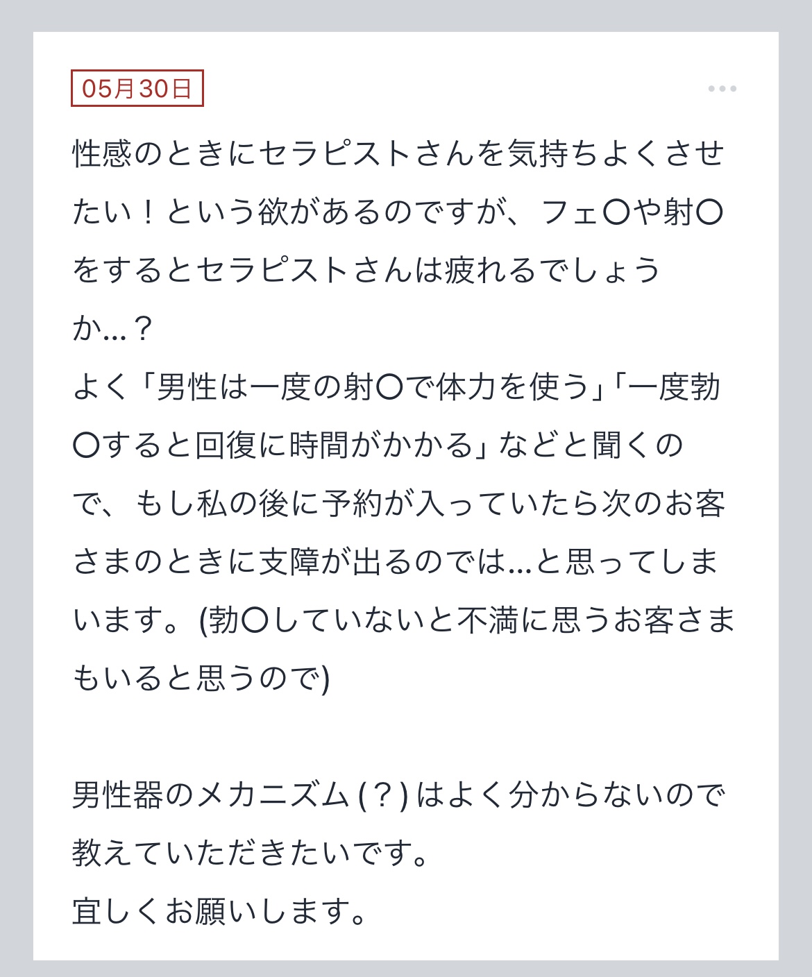 【射◯をするとセラピストは疲れますか?】
