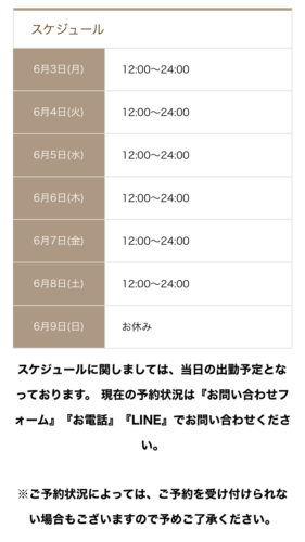 遅くなりました〜(;´Д`A 今週の スケジュールで〜す!笑 もう、木曜!(◎_◎;) いつも、だいたい お昼12時から 夜の12時までの 出勤とさせて 頂いておりますが 予定が…