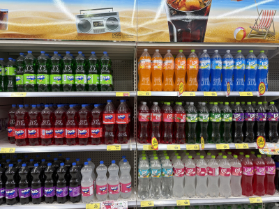 見たことのない青色のジュースや、見たことのないCoca-Colaの缶がありました。。