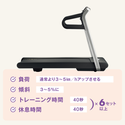 このトレッドミルという機械で時速14kmで30秒全力ダッシュして、時速6kmで90秒歩くという行為を8セット繰り返す💨