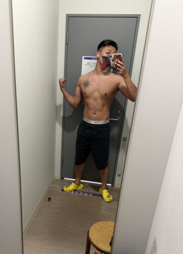 鏡に向かってポージングしてみたら、少しずつ筋肉のラインが見えてきて嬉しい気持ちになりました。