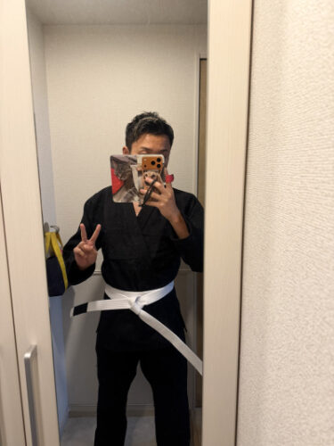黒い柔術着に白い帯の組み合わせがとても新鮮で、鏡の前で試着してみるだけでワクワクしてきました😊
