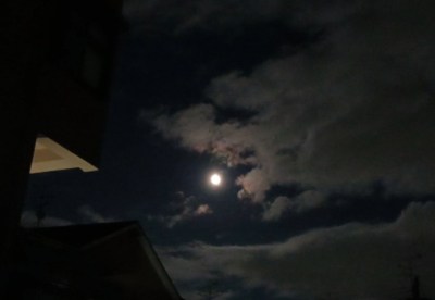 ちょっと雲が多いけど、時々雲の合間から綺麗なまん丸お月様が顔を覗かせてくれてるよ🌕️