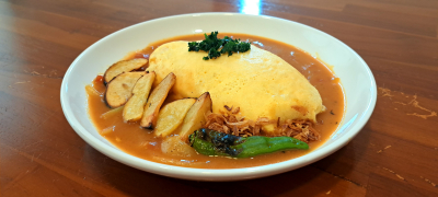 早速作ってみました。やっぱりジャストサイズ。甘口のスパイスで作ったカレーが有ったのでソースがわりにしてみました。 このフライパン深さがあって丸く回り込んでいて底の面積が広くて薄いのでお湯を沸かすのがメチャクチャ早いです。ちょっとお湯が欲しいとき、自分は食べないのですがカップラーメンに凄く便利そうです。